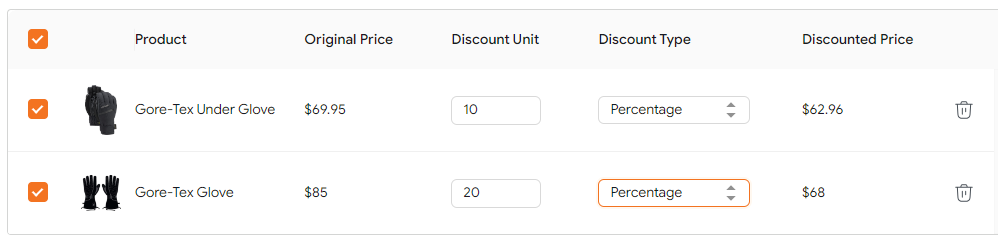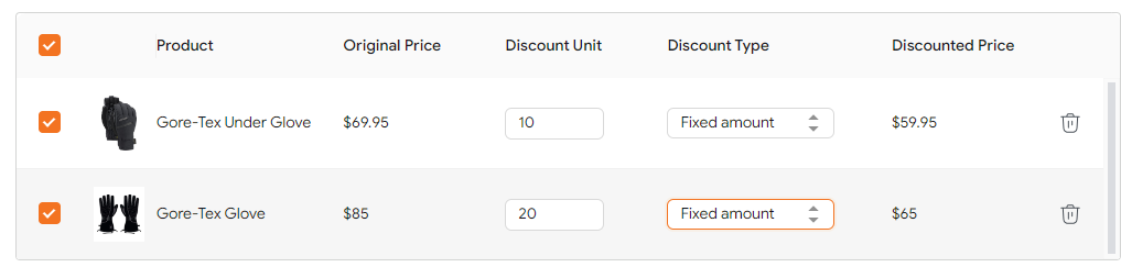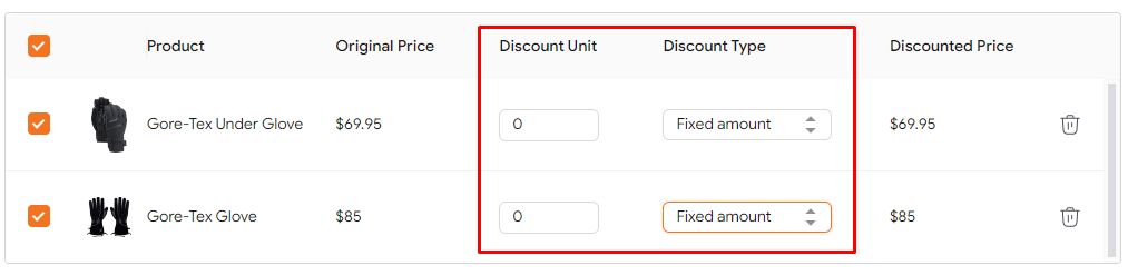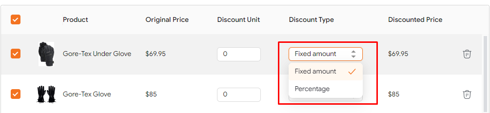 - There are 2 discount types: fixed amount and percentage